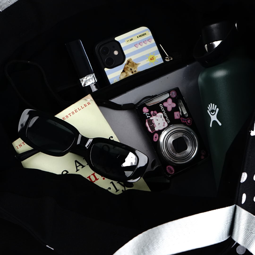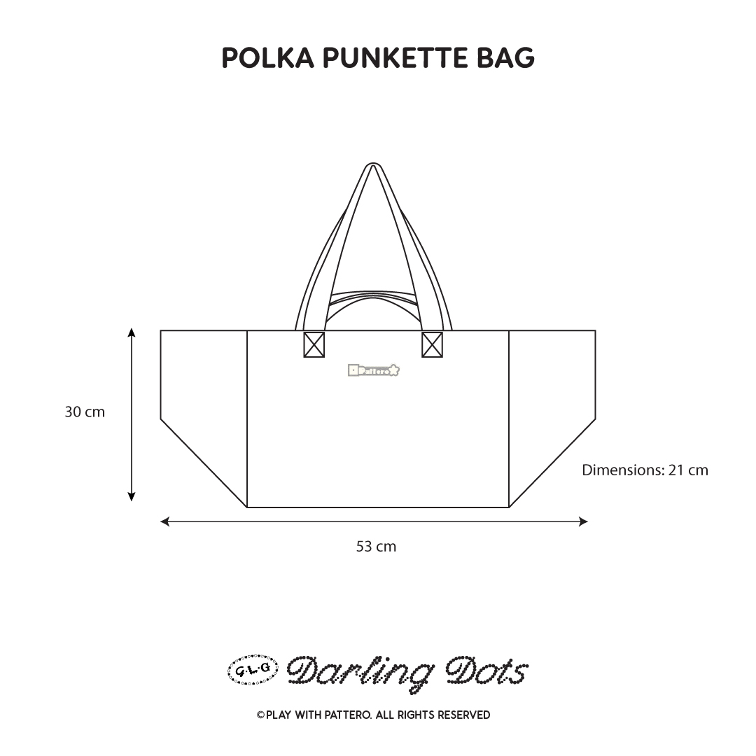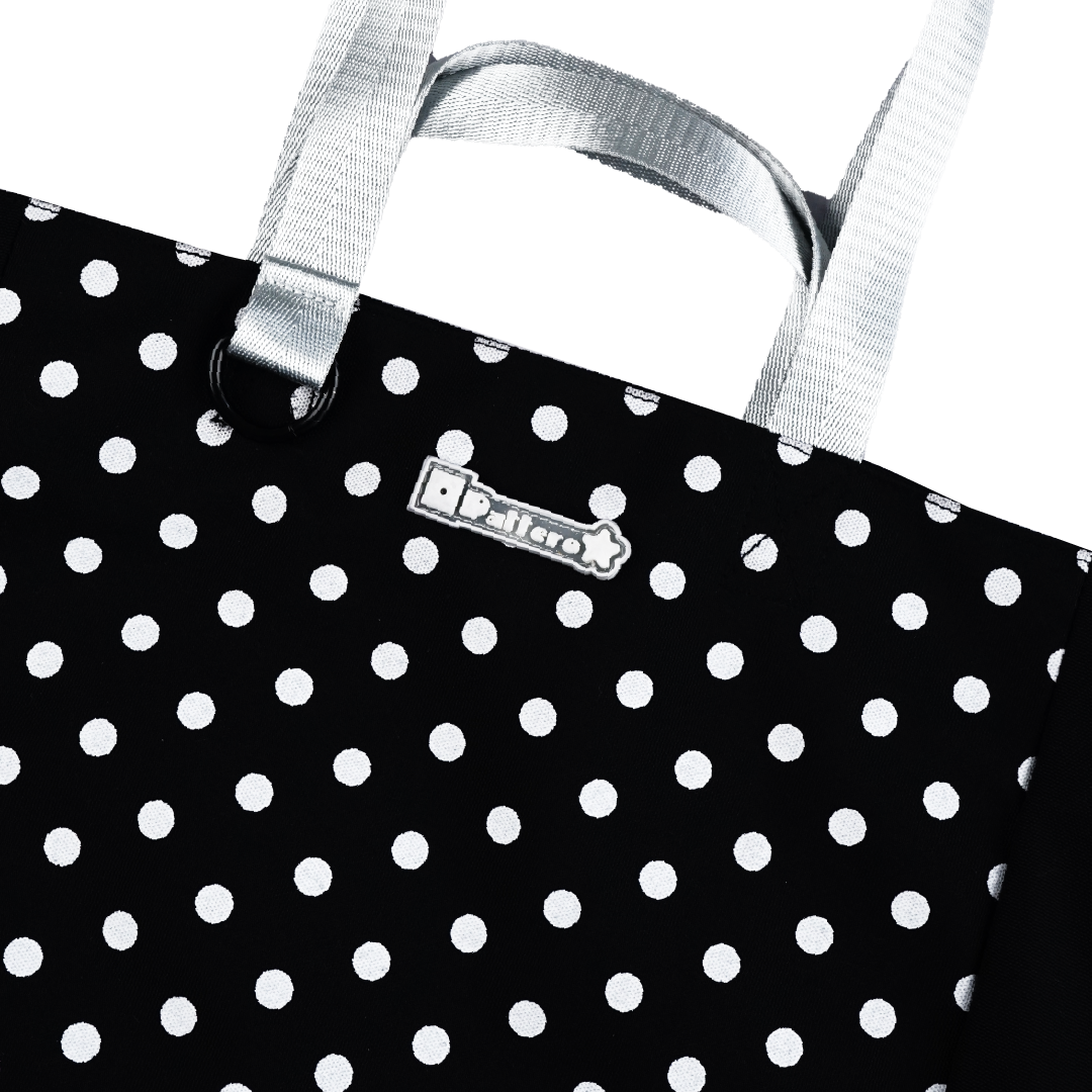 Add a playful twist to your outfit with the Polka Punkette Bag – a bold black tote with white polka dots, silver grommet accents, and spacious interior perfect for your everyday essentials. Stylish, durable, and effortlessly cool.