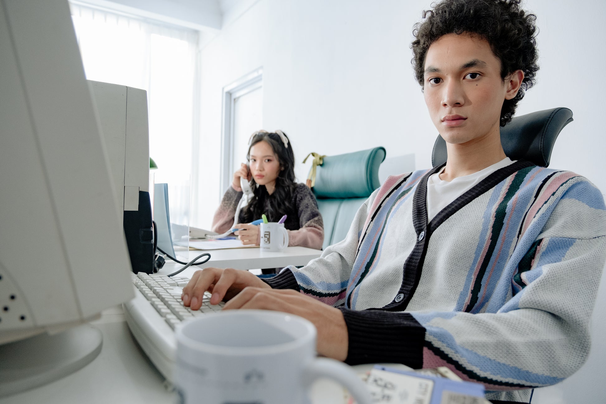 Colorburst Cardigan from the City Work Metropolitan collection is an acrylic cardigan inspired by colorful visual waves processed through digital programs, transforming into dynamic computer-generated imagery. Featuring wave shrink graphics, it’s designed for casual dailywear. Made in Indonesia.