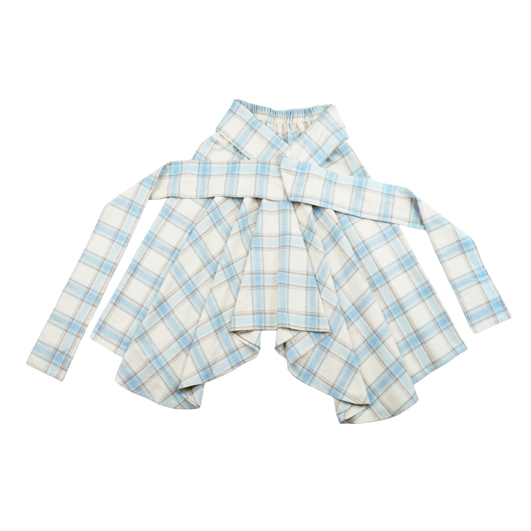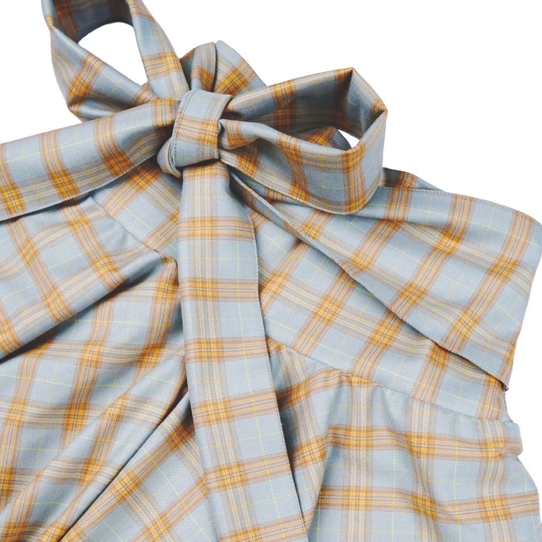 From the Too Fast To Catch collection, this skirt features a semi-wool plaid fabric with a warm, heavyweight feel. Designed with an extra-long ribbon inspired by the coquette era, it symbolizes a finish-line tape broken by a race winner. Crafted with warm-lock technology, it blends casual, formal, and daily styling with ease. Made in Indonesia.